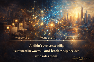 A strategic, decade-by-decade analysis of AI evolution from 1940 to 2040, highlighting acceleration cycles, slowdowns, and what senior leaders must do next.