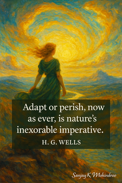 H. G. Wells once said, “Adapt or perish, now as ever, is nature’s inexorable imperative.” The line is sharp and honest. It pushes you to face the simple fact that nothing stands still. The feeling behind the quote is firm. You sense urgency, clarity, and a quiet warning. Nature does not wait. It moves. It asks you to move with it. #Mindset #Growth
