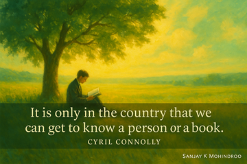 “It is only in the country that we can get to know a person or a book.” Cyril Connolly’s words are as sharp as they are subtle. They suggest that it takes space—away from noise, away from constant motion—to know anything truly. A person. A book. Even ourselves. #Reflection #Leadership