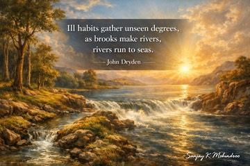 Most damage in life does not arrive loudly. It slips in quietly. Dryden reminds us that small habits, repeated daily, grow into forces that shape our character and future. The emotional signal is clear. Pay attention to the small streams before they become floods. This is not just about bad habits. It is about the silent power of repetition.
