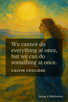 There is a line by Calvin Coolidge that cuts through noise: “We cannot do everything at once, but we can do something at once.” It highlights the pressure we put on ourselves. It teaches a calm but firm truth. The feeling behind the quote is steady, honest, and grounded. It reminds us that action gives clarity while delay only feeds stress. This message matters for anyone trying to build a strong work ethic, solid plans, or a fulfilling life. #Mindset #Focus