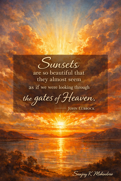 Some moments stop motion and sharpen attention. “Sunsets are so beautiful that they almost seem as if we were looking through the gates of Heaven.” The line names a feeling most people sense but rarely pause to honor. It speaks to awe, scale, and restraint. It belongs as much to leadership and work as it does to nature. It invites reflection without noise and focus without force. #perspective #focus