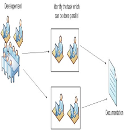 In this phase, the application is coded. Coding for different modules of the same prototype can proceed in parallel. The development process can be in two stages: Coding for Functional Requirements and Coding for UI requirements. The code is developed first for the core functionalities. Parallel development can be done for modules of the same prototype that are independent of each other. Subsequently, these modules can be integrated. In the second stage, the user interface is designed so that it can be supported on as many mobile operating system platforms as possible; it is not good practice to have a different look and feel for the same application on different platforms. The minimum set of interface components present in all mobile OS platforms should be used in the design. Finally, the documentation of the development phase is then forwarded to the prototyping phase.