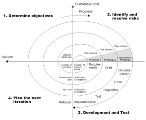 It is combining elements of both design and prototyping-in-stages, to combine the advantages of top-down and bottom-up concepts. This model of development combines the features of the prototyping model and the waterfall model. The spiral model is favored for large, expensive, and complicated projects. This model uses many of the same phases as the waterfall model, in essentially the same order, separated by planning, risk assessment, and the building of prototypes and simulations.